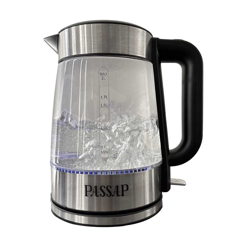 غلاية كهربائية باساب 2 لتر - زجاج - بإطار ليد ازرق مضئ - PK-200 متوفر